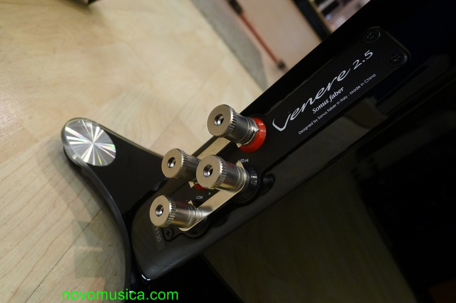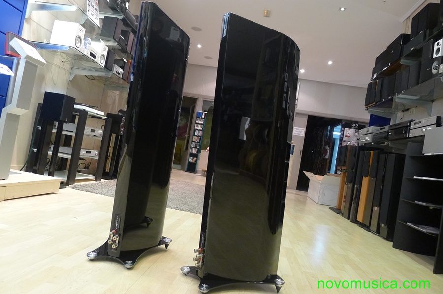 Los altavoces sonus faber venere sorprenden por su diseño estilizado y por la calidad de los acabados. En la fotografía podemos apreciar la trasera del altavoz, siendo éste construido en forma de Lira, al igual que otros diseños de la marca.