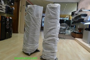 Hemos repetido el mismo proceso con el otro altavoz y ya estamos listos para descubrir qué preciosidades se esconden detrás de estas fundas de tela blanca, los altavoces de suelo Sonus Faber Venere 2.5