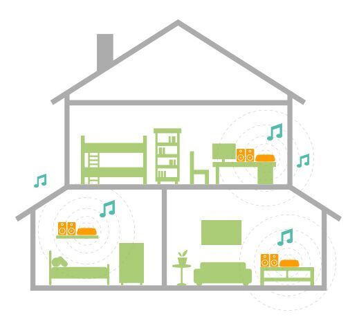 Conectando varios Clique R100 a una misma red Wi-Fi, podrás crear un completo sistema de música con hasta 10 zonas de reproducción independientes. La exclusiva tecnología de sincronización del Clique R100 también permite agrupar zonas separadas para que reproduzcan el mismo contenido de un modo sincronizado.