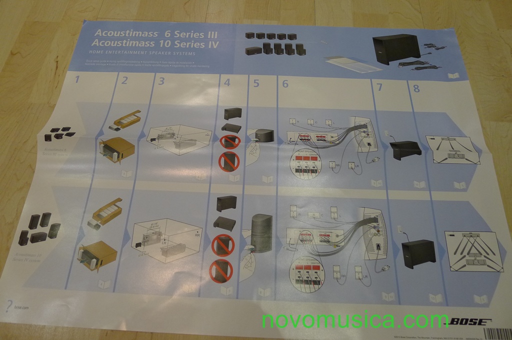 Nada más abrir la caja vemos un par de papeles, uno es el certificado de garantía de 5 años y el otro es nuestro “salvavidas” o “mapa del tesoro” que es como yo le llamo. No es otra caso que el esquema de montaje de los altavoces Bose AM10 S4, que aunque es muy sencillo si no fuera por la ayuda del esquema se nos haría muy complicado. En este caso, siguiendo los pasos y sus fotografías hace que instalar los altavoces sea realmente fácil.