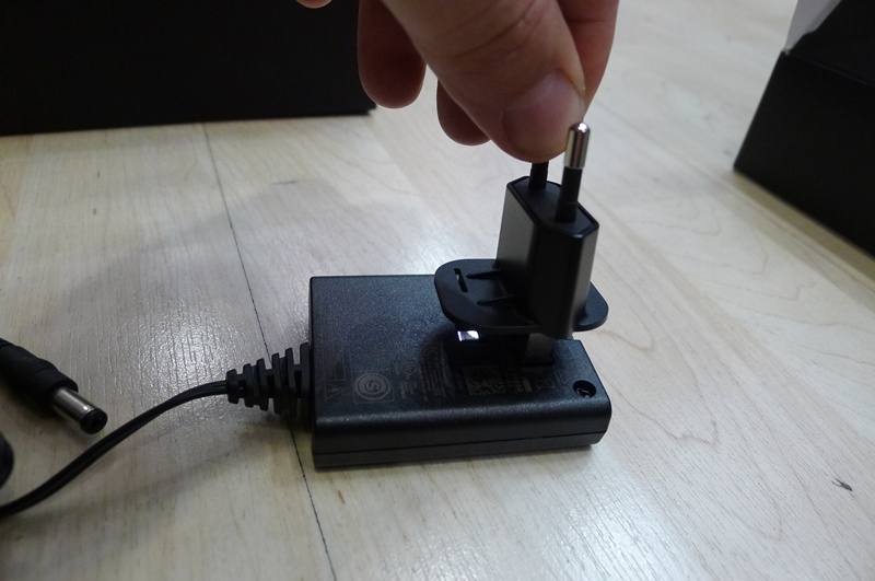 El enchufe de la corriente viene con conectores planos, pero hay un adaptador para conector tipo europeo. Este mismo embalaje viene también con adaptador para UK. Se posiciona encima y pretando un poco queda perfectamente sujeto.