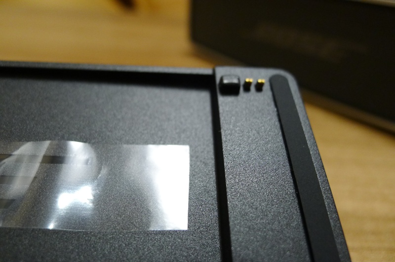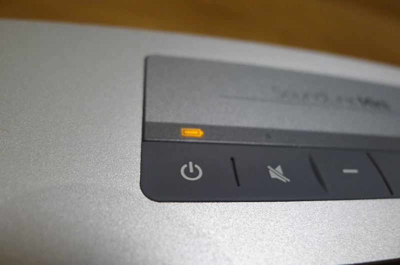 Otra vista del altavoz desde el lado opuesto y situado encima de la base de carga. Para que funcione no es necesario que esté posicionado encima de la misma. Las posibilidades que ofrece el que lleve la batería integrada son infinitas; con su hermano mayor el SoundLink Bluetooth S2 estas navidades pasadas hice lo siguiente: