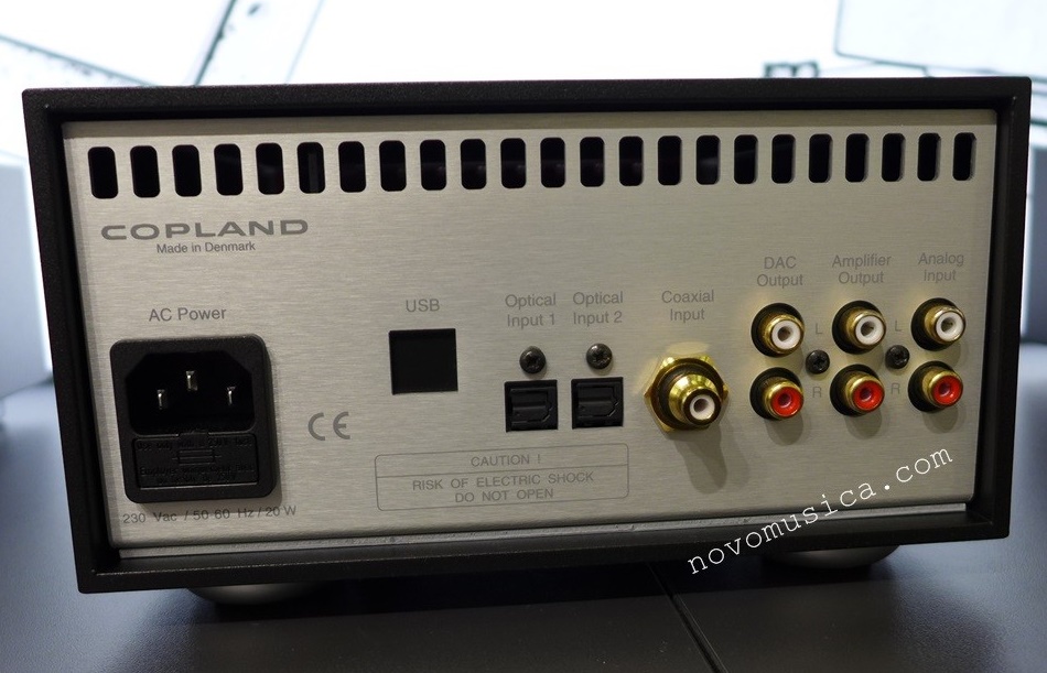 Como corresponde a un producto firmado por una compañía de inequívoco acento purista, el Copland DAC215, que llama inmediatamente la atención por sus muy compactas dimensiones y su pureza de líneas, basa sus atributos en una combinación muy cuidada de topología circuital y componentes elegidos por sus cualidades sonoras. Así, en el corazón del nuevo DAC de Copland encontramos una sección de conversión D/A con varias entradas S/PDIF, capacidad de procesado de señales PCM y DSD y basada en el reputado “chip” ES9018 Reference. Una sofisticada pieza de microelectrónica con tecnología de 32 bits montada, en este caso, en configuración cuádruple monofónica (es decir, 8 mono a 2 estéreo). Esta elaborada solución, en la que se combinan cuatro convertidores D/A en fase y otros cuatro en contrafase por canal, permite aprovechar las propiedades estadísticas de las señales en liza: las señales que alimentan las fases están correlacionadas y se suman de manera aditiva, mientras que las correspondientes al ruido de dichas fases están descorrelacionadas, mejorándose de este modo la relación señal/ruido de la forma de onda analógica resultante. Por otro lado, y en sintonía con la filosofía de Copland, las secciones analógica y de filtrado del DAC215 están ejecutadas íntegramente con componentes discretos, y cabe señalar que la topología en Clase A utilizada en la primera de ellas es idéntica a la que podemos encontrar en los celebrados reproductores de CD de la firma escandinava. En lo que a conectividad se refiere, el nuevo DAC de Copland incluye una entrada USB asíncrona, tres entradas digitales S/PDIF, una entrada analógica y dos salidas digitales (una de nivel fijo y una de nivel variable). En el caso de la entrada USB, hay que señalar que utiliza una implementación muy avanzada. Gracias a ello, acepta incluso tanto señales PCM de 32 bits/384 kHz como DSD64 y DSD128. A todo ello hay que añadir que el DAC215 alberga en su interior una circuitería de preamplificación completamente equipada. ¿Qué queremos decir con esto? Pues que además de ser muy completa, incorpora detalles como un control de volumen analógico de inspiración audiófila y, sobre todo, una salida de auriculares alimentada por una circuitería dedicada. Pero esto no es todo, porque dicha circuitería combina nada menos que funcionamiento en Clase A con etapas de ganancia basadas en válvulas de vacío (en concreto dos dobles triodos ECC88)… en suma, filosofía Copland en su máxima expresión. Fiel a su inspiración purista, el nuevo Copland permite al usuario evitar tanto el control de volumen, como la sección de preamplificación para así trabajar en un modo DAC que preserve al máximo la pureza de la señal. En lo que a sistemas operativos se refiere, el DAC215 es compatible con Windows XP/Vista/7/8, Mac-OS X y Linux.