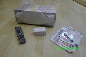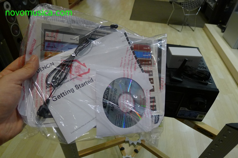 Junto con el amplificador han salido el mando a distancia, el micrófono de auto-calibración, antena FM, un pequeño dosier en papel con la puesta rápida en funcionamiento y un CD donde vendrán todas las instrucciones en los diferentes tamaños.