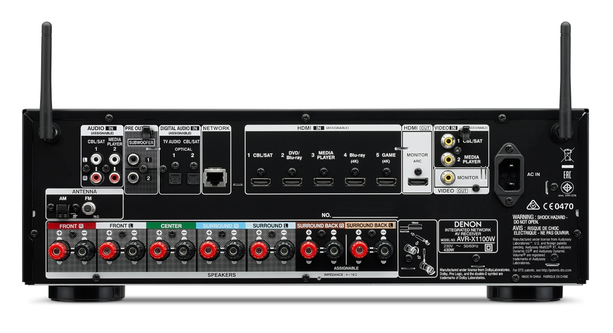 En cuanto a los archivos que puede reproducir vía Ethernet, además de FLAC HD 192/24, WAV 192/24, ALAC 96/24, el nuevo AVR-X1100W puede reproducir AIFF 192/24 y DSD. En todos los casos permite la reproducción sin pausas. Otra sorpresita que nos guarda este nuevo modelo, es la incorporación de serie de WiFi y Bluetooth para la recepción de contenidos sin cables.