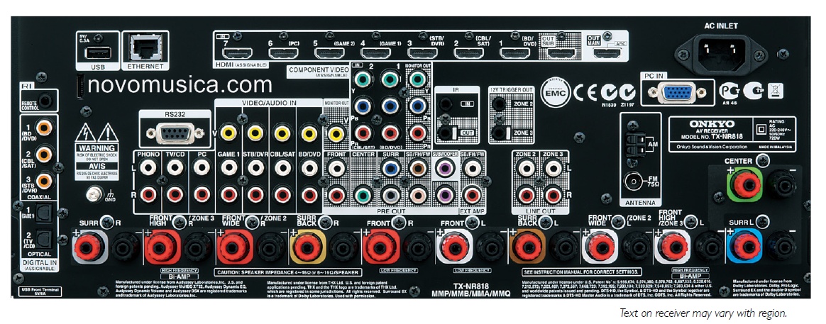 Ya han sido anunciadas las especificaciones técnicas del que será uno de los nuevos, y muy potentes, receptores Home Cinema de Onkyo para el curso actual. Onkyo TXNR818es un amplificador de cine en casa de 7.2 canales que desarrolla una potencia de 180 Watios por canal. Destacar varias cosas importantes de este receptor es complicado pues es un aparato muy muy completo: doble procesador de vídeo HQV Vida VDH1900, tecnología Qdea para 4K, calibración ISF, DAC integrado 192kHz/24 bit, tecnología InstaPrevue, adaptador LAN, certificación THX Select2 Plus…