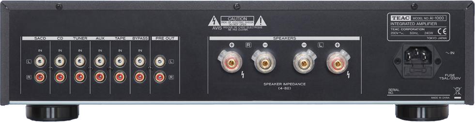 Teac AI-2000 es un amplificador integrado más robusto que el AI-1000 y tiene una potencia de 125 Watios por canal, cuenta con entradas balanceadas, previo de phono y al que se le pueden conectar dos parejas de altavoces. 5 entradas RCA analógicas y 1 salida preOut. El modelo AI-2000 tiene un peso de 14 Kgs