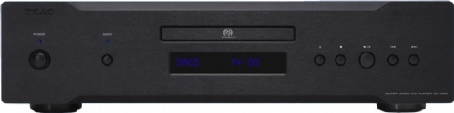 Teac CD-1000 es el más sencillo y cuenta con un covertidor Digital-Analógico de Cirrus Logic CS 4398. El panel frontal, al igual que en resto de la serie es de aluminio y tiene una pantalla display que facilita la lectra. Tiene dos salidas de audio, una analógica RCA y otra coaxial digital.